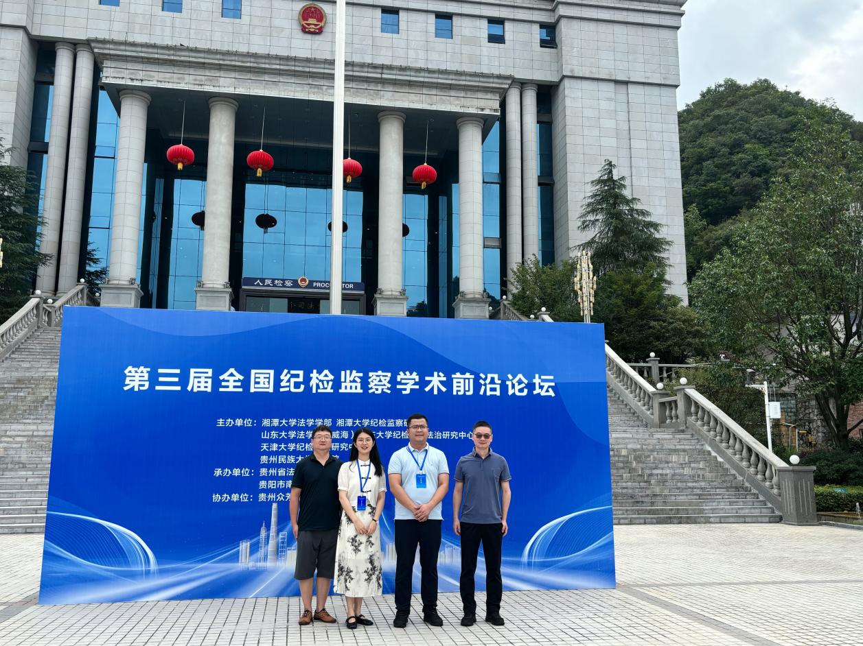 第三届全国纪检监察学术前沿论坛由湘潭大学纪检监察研究院、山东大学纪检监察法治研究中心等多家机构联合主办,贵州省法学会犯罪学研究会、贵阳市南明区人民检察院等单位承办,致力于推动纪检监察学术研究、学科建设和实务交流。邱帅萍院长受邀参加本次论坛,法律系瞿目主任受邀参加学术与谈,就纪行协调与监检衔接等问题进行了交流。