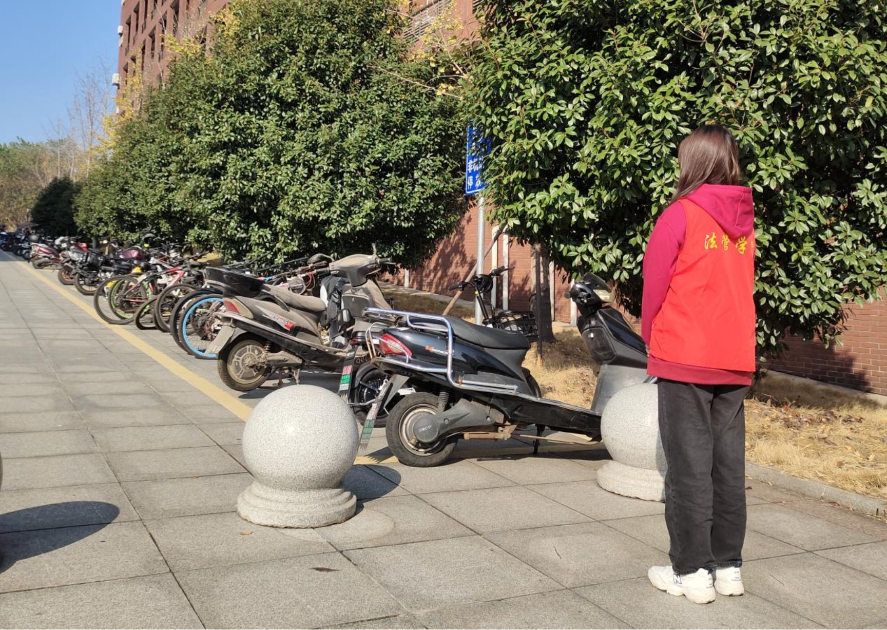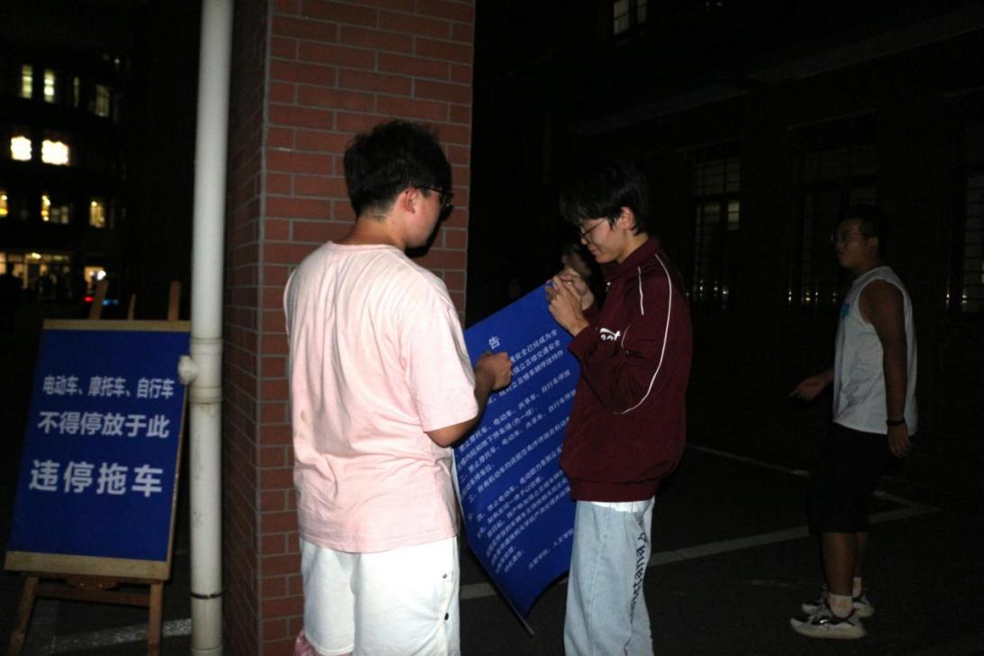 、人文学院与马克思主义学院三院联合行动,在立言楼内外积极开展违规停放车辆整治行动,并进行大力管控。