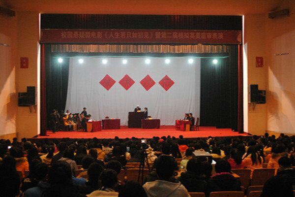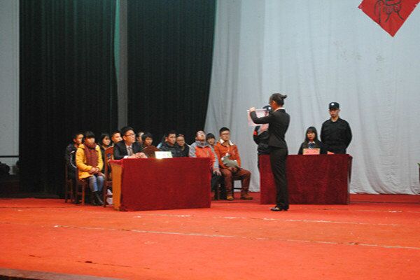 法律协会在南校俱乐部举办校园悬疑微电影暨第二届模拟英美庭审活动。湘潭市消费者协会秘书长任向荣、副秘书长程奇志、九华团工委书记颜娜、法律系老师李云霖、色情动漫