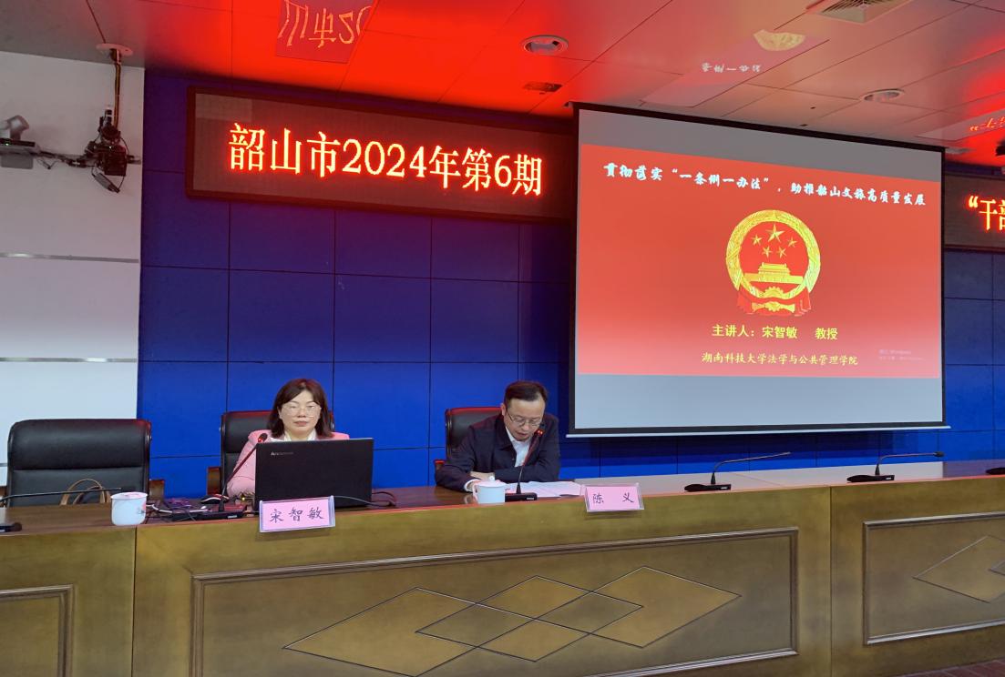 副院长宋智敏教授应邀为该市“干部夜校”培训班90余名学员进行了专题授课。市委书记曹伟宏,市委副书记、市长邓望军,市人大常委会主任蒋卫阳等市委、市人大常委会、市政协在韶领导以及市法、检两院负责人,各乡镇、韶山高新区、市委各部委、市直各单位、各人民团体、市管企业主要负责人和部分分管负责人参加培训。