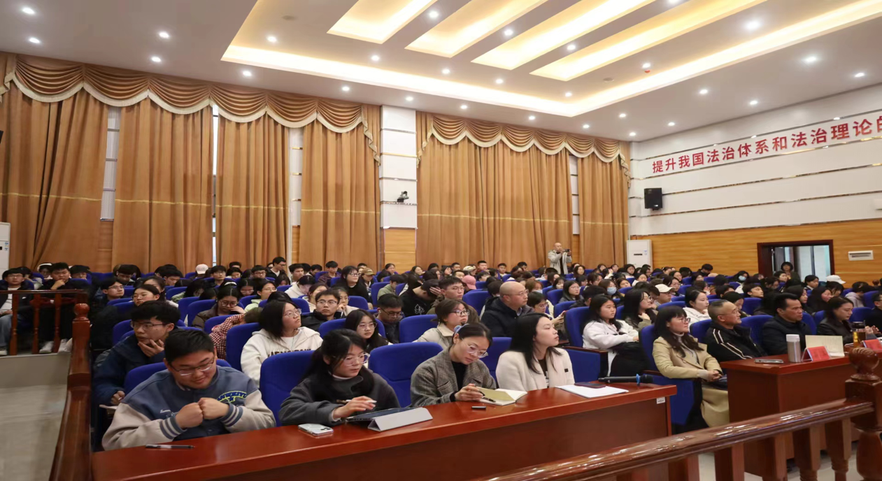院长邱帅萍教授作为主持人,副院长宋智敏教授、徐德刚教授、胡之芳教授、黄素梅教授、刘鄂副教授等学院领导老师、湘潭市仲裁委领导、湘潭大学的同仁及学生200余人参与了此次讲座。
