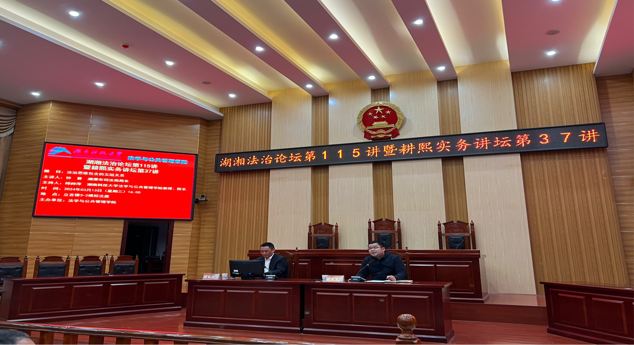 2024年3月13日,湖湘法治论坛第115讲暨耕熙实务讲坛第37讲在立言楼A3-2模拟法庭举行。讲座邀请了湘潭市司法局局长钟晋先生作为主讲嘉宾,由色情动漫