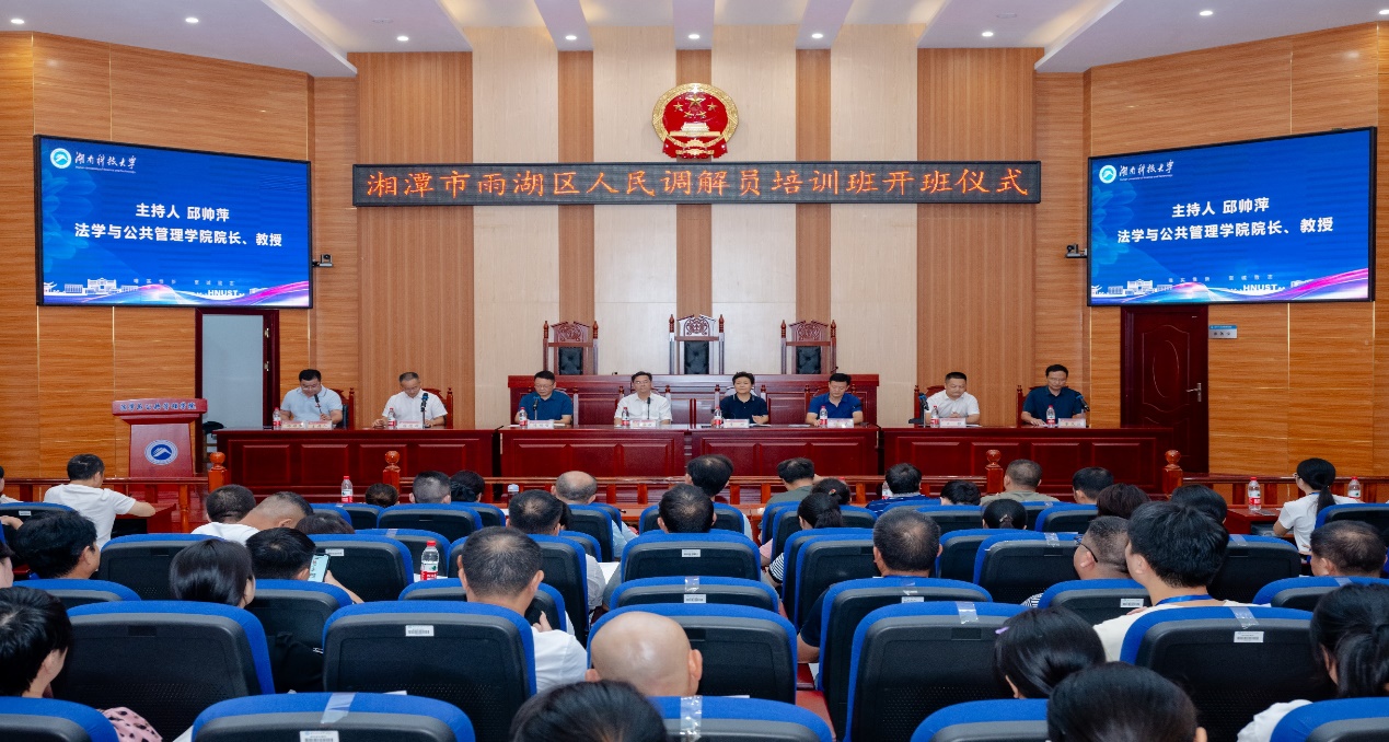 对雨湖区辖区内人民调解员代表以及法院专职特邀调解员开展专题培训。培训班于9月5日上午在我校立言楼3-2模拟法庭正式开班,法院专职特邀调解员、各乡镇街社区人民调解员、各行业调解组织调解员代表共计130余人参加开班仪式。我校党委委员、副校长李琳,雨湖区人民法院党组书记、院长杨立,湘潭市中级人民法院审判委员会专职委员李明智出席开班仪式并分别致辞,仪式由色情动漫