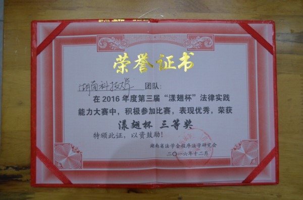 代表队作为庭一被告方,最终以94.62的高分,在参赛的十二个代表队中排名第三,并获得团体三等奖的好成绩。其中,张益同学获“杰出诉讼能力”一等奖,王静同学获“杰出书记员”二等奖,徐磊同学获“杰出诉讼能力”三等奖。刘敏老师个人也荣获“杰出指导能力”二等奖。 第三届漾翅杯法律实践能力大赛,响应了中国法学会“法治文化进校园”的要求,通过法律实践能力竞赛,面向当代大学生弘扬法治精神,传播法律知识。色情动漫