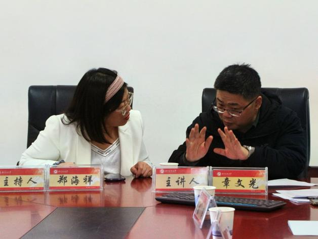 党委书记郑海祥担任主持人、副院长王明担任与谈人,全院近30名师生参与。