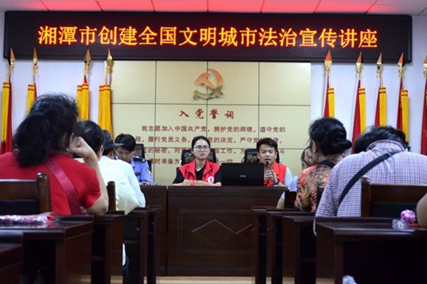 法律援助中心应湘潭市市委法制办、市司法局邀请于岳塘街道菊花塘社区、大板房社区、瓦窑塘社区以及岳塘岭社区开展全国文明城市法治宣传讲座。此次宣讲活动在市司法局罗主任、周主任协助下,由来自色情动漫