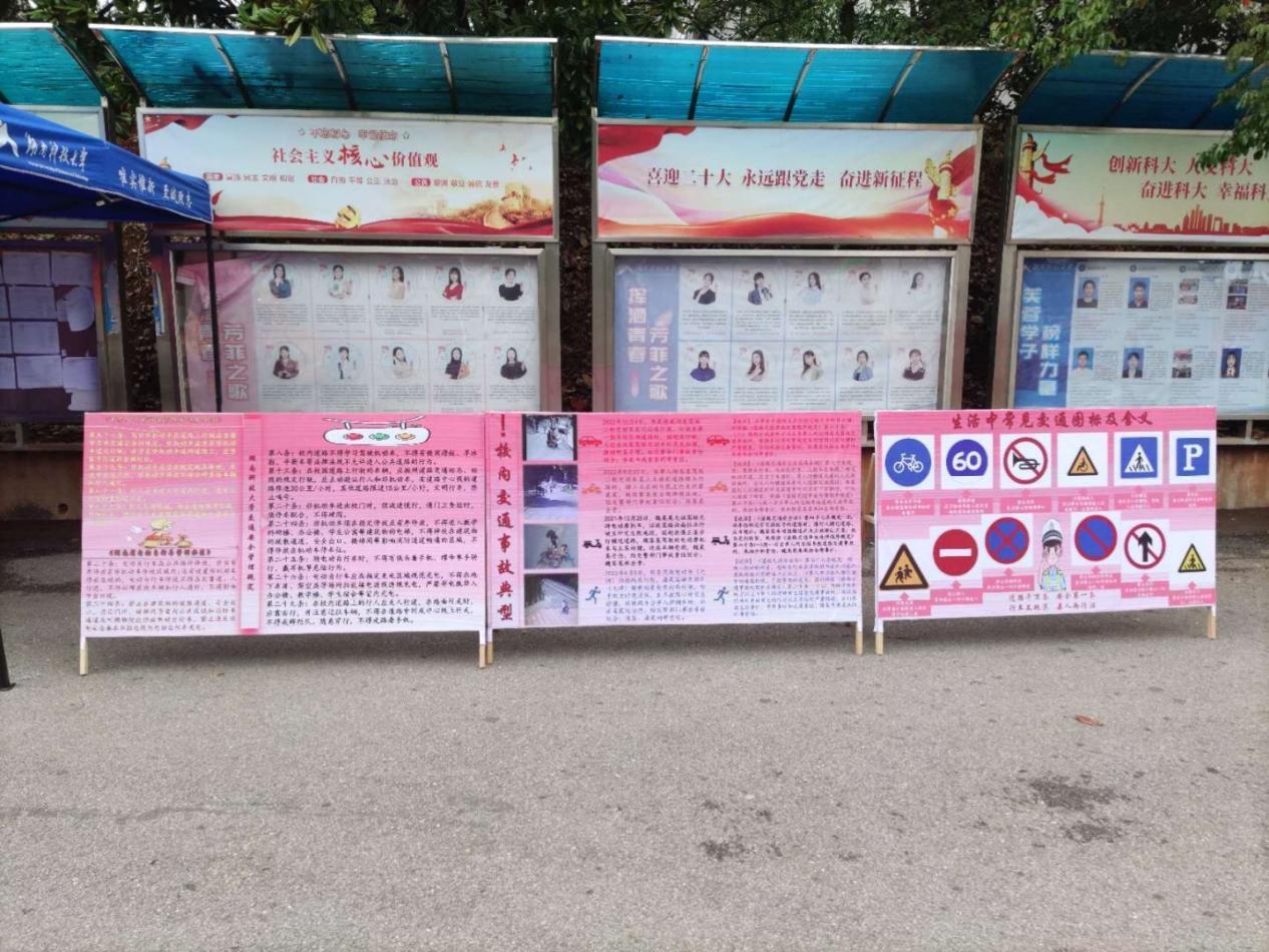 交通安全管理规定》的内容和生活中常见的交通图标,以及发生在学校的一桩桩一件件真实的交通事故案例,希望各位同学能从一个个鲜活的案例中痛定思痛,引以为戒,明白文明出行的重要性。为了让学校交通安全规定更加贴合我们的生活,法律协会还特地在现场向全校师生进行意见征集,收集师生对学校交通问题的看法、鼓励与意见。