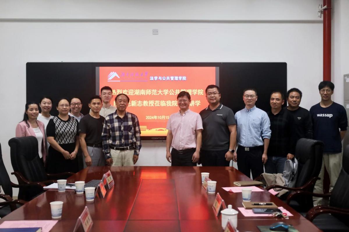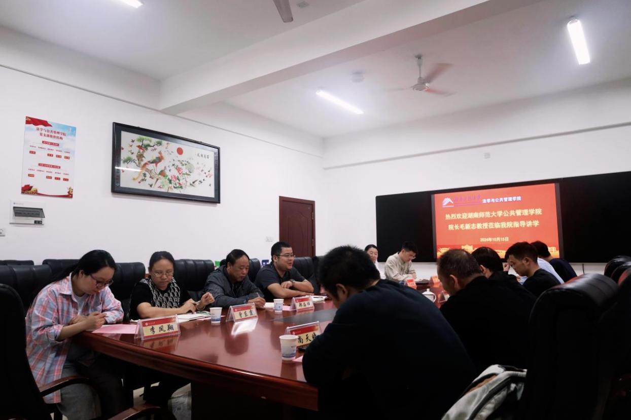 10月15日下午,公共管理学科建设与MPA发展座谈会暨湖湘公共治理论坛第3讲于立言楼A427举行。本次讲座邀请了湖南师范大学公共管理学院院长、MPA中心主任毛新志教授作为主讲嘉宾。学院党委书记郑海祥主持,院长邱帅萍、副院长王明、法律服务中心主任马驰升以及MPA教育中心及公共管理系全体教师参加。