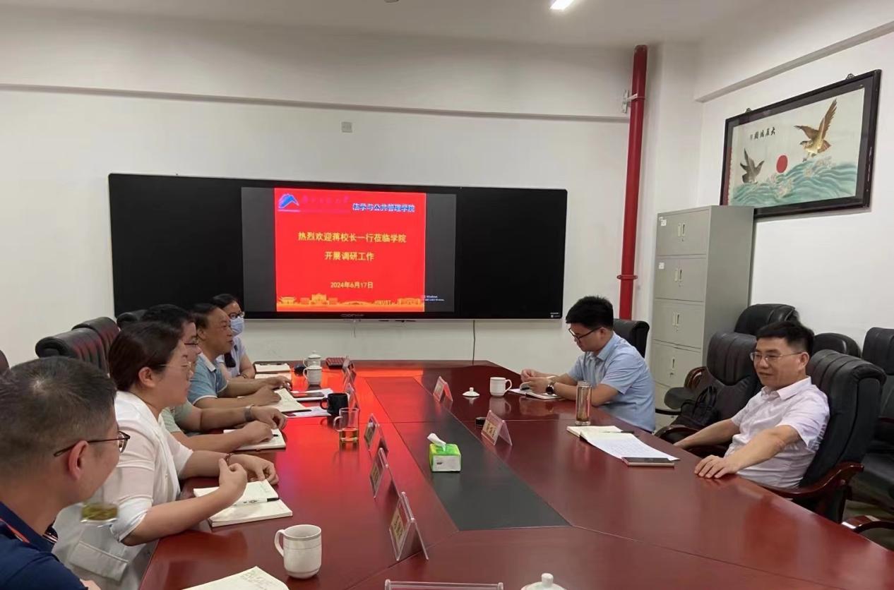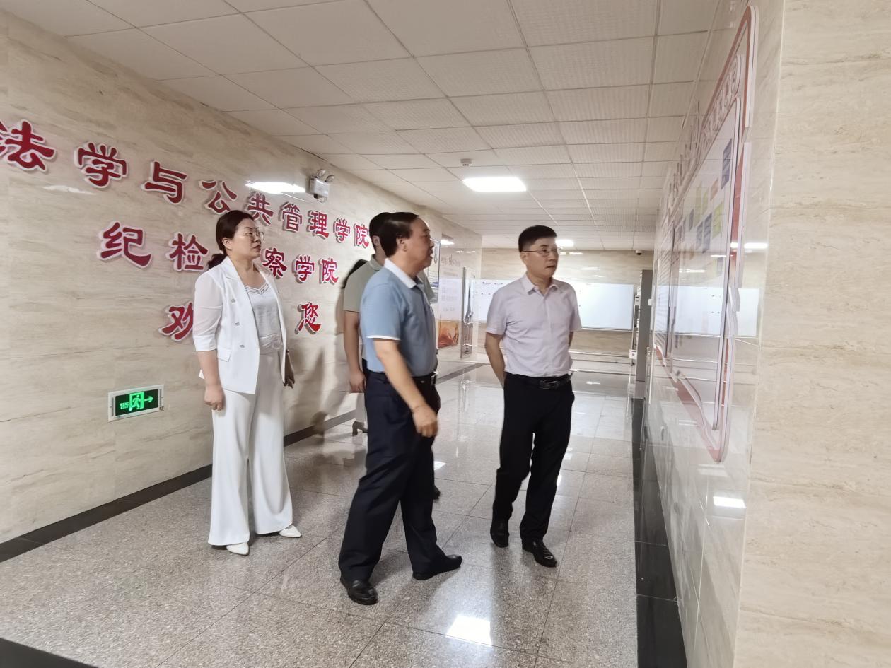 蒋丽忠一行在学院领导陪同下,参观了学院的院史文化长廊,院党委书记郑海祥介绍了学院20余年的发展历程以及学院在师资队伍建设、学科发展、科学研究、学术交流、人才培养、法律服务等方面取得的成就,得到了蒋校长的充分肯定和鼓励。座谈会上,院长邱帅萍教授从学院发展规划、学科科研、教学与人才培养现状及建设目标、存在的主要问题、今后采取的主要措施、下一步重点工作等几个方面进行了详细汇报。