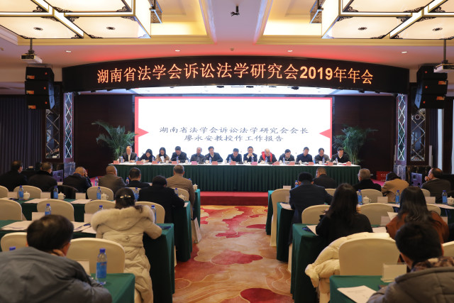 2019年12月21日,湖南省法学会诉讼法学研究会2019年年会在长沙富丽华大酒店举行。湖南省高级人民法院副院长杨翔、湖南省人民检察院副检察长印仕柏、长沙市中级人民法院党组成员、副院长范登峰等领导与法学专家教授参会。湖南省法学会诉讼法学研究会会长、湘潭大学副校长廖永安教授作工作报告。湖南省法学会副秘书长、办公室主任夏鸽翔出席开幕式并讲话。来自省内外高校科研机构人员、司法实务部门人员、在校大学生等200余人出席本次年会。