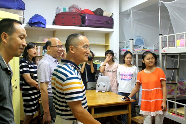 院长徐德刚,副院长陆自荣、李云霖和辅导员王球云由学院团委学生会副主席谭巧俐和宿管部副部胡玲带领前往五区三栋17级女生宿舍,党委书记黄伟、副书记叶军由宿管部副部曾迪娜带领前往六区三栋的17级男生宿舍,逐间看望新同学。 每到一个寝室,徐德刚院长首先询问的就是宿舍里的孩子们分别来自哪里,接着提醒他们在日常生活中要多注意用水用电的安全,防止意外事故发生。“室友间一定要互相帮助,互相包容,珍惜来之不易的四年同宿之情谊。”徐德刚院长深切地对新生们说道。来到五区三栋602时,恰逢17级法二班廖佩文同学过生日,徐院长高兴地为她点燃生日蜡烛并送上美好的祝愿。 见到17级有一名身高191cm的男生,黄伟书记高兴的说:“男生要注意学习与娱乐的时间分配,尽管是文科男生,平时也要多运动。可以组建一个篮球队,一定能取得很好的成绩!” 叶军书记还建议新生要注重培养独立生活的能力,同时强调了宿舍氛围的营造,要互相团结,才能共同进步。 对于领导和老师的到来,新生们反响热烈,一路掌声笑语。17级公管二班的朱端平同学说:“学院领导老师的慰问让我们倍感温暖,感谢老师们的良苦用心。” (责任编辑:admin) |