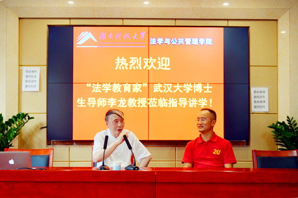 指导,并于文科楼A425会议室开展以“关于我国法学教育发展的几个问题”为主题的讲座。院长徐德刚担任主持,党委书记黄伟、副院长胡正昌、副书记叶军、专业老师李云霖、夏飞明、胡之芳、李倩和15级法学专业学生到场学习。 “法学最早研究的是人的行为规则,‘法典是人民自由的圣经’,我们研习法律,一方面希望确认和保障公民自由权利,另一方面也是确保公民正确行使自由权利。”李龙教授详细为大家讲述了法学教育的发展历程,从春秋子产造刑书到中国历史上第一部较完整的封建社会法典《法经》的制定, 从三国魏明帝时设律博士职专门传授法学到晚清法学家沈家本仿照西方模式修订法律。 “曾经的法学本科教育是有专业区分的。上世纪90年代末,国内法学本科教育改革呼之欲出。我当时曾指出,中国法学教育改革的关键在于更新法学教育观念,即摒弃从苏联沿袭过来的‘对口教育’理念,转而探求法学素质教育,着重培养学生的能力,并提出将过去分散的几个法学专业合并成一个法学本科专业。”李龙教授由此告诫大家在法学发展的新阶段要抓住机遇,并以新姿态、新思想去研究新问题。 结合当代法学教育问题的现状,徐德刚院长虚心请教:“老师应如何加强对本科生的培养以及法科生的未来趋势会是怎样的?”李龙教授答道:“我常常对我的学生提出‘三要求’,倡导‘三精神’。 ‘三要求’即要博览群书,要勤于思考,要笔耕不辍;‘三精神’即夯实基础理论的勤奋精神、联系现实问题的批判精神以及开拓理论前沿的探索精神。同时我们要看到法学的前途,积极奋斗,永不服输。”至此,讲座圆满结束。 (责任编辑:admin) |