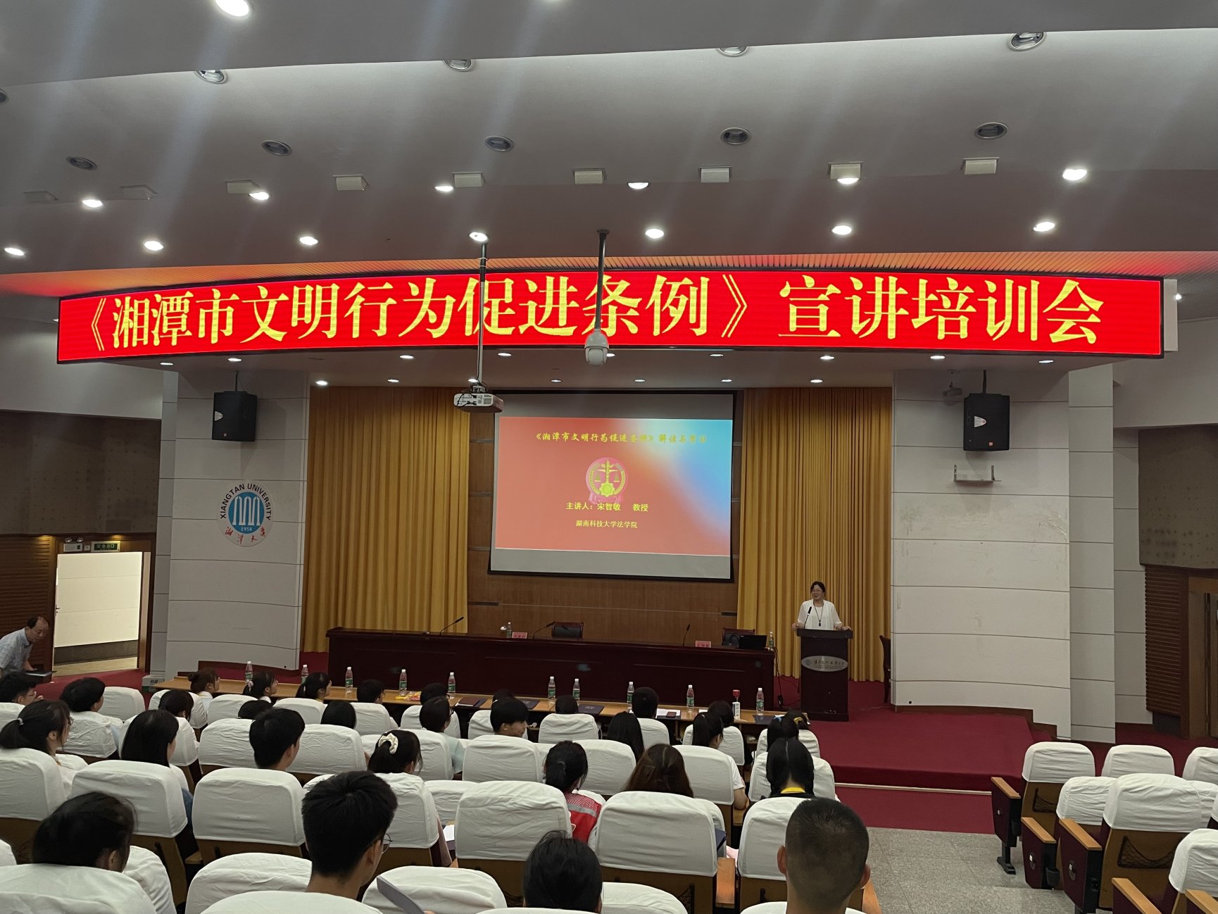 宋智敏教授应湘潭市市委宣传部的邀请为大学生志愿者进行条例的解读和学习。