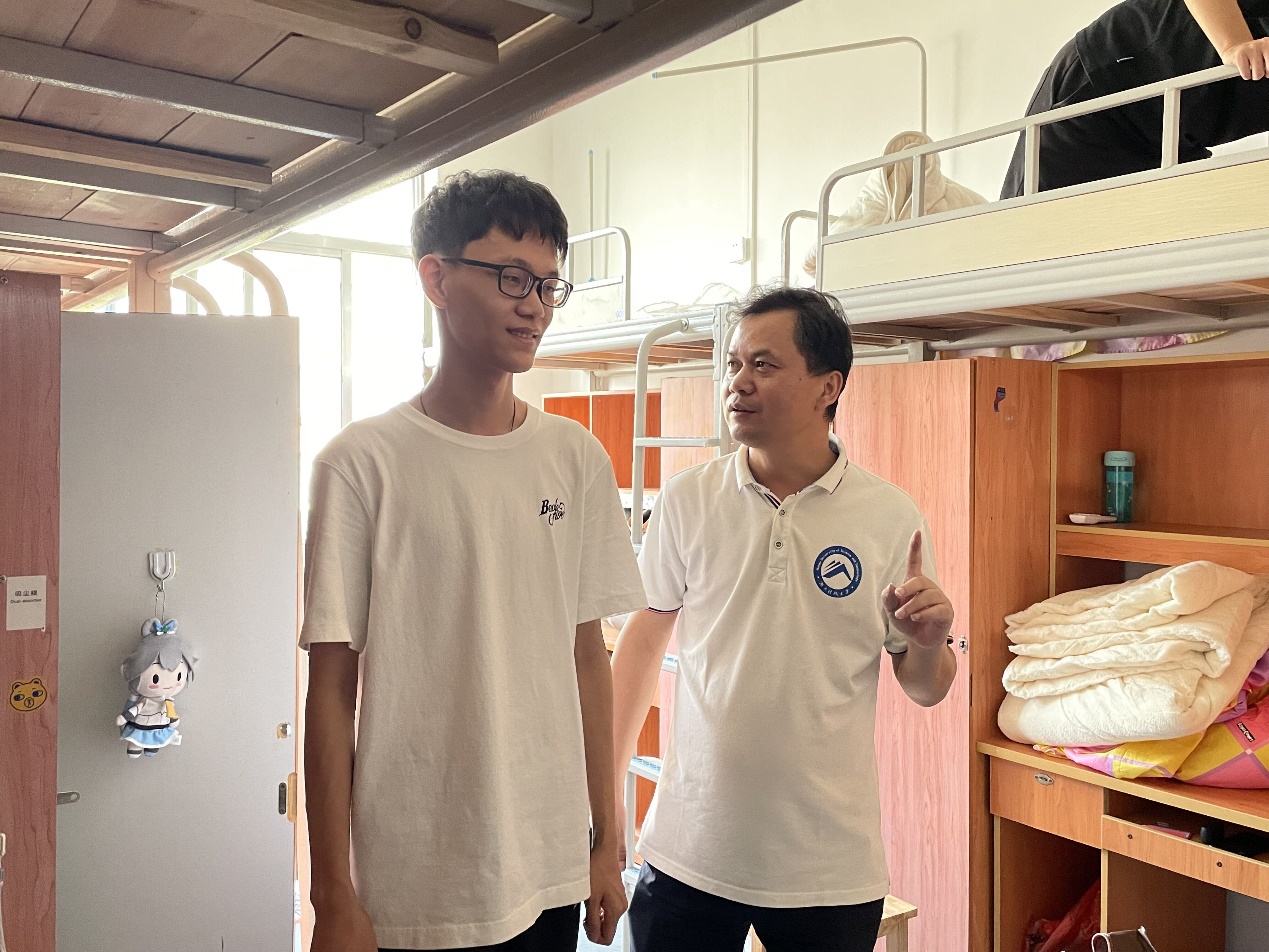 走入寝室,学院领导老师与新生亲切交谈,询问大家对大学新生活的憧憬与追求。“大家都是来自哪里啊?”“对学校的环境还适应吗?”......一声声简单的问候传递着学院领导老师对学生真切的关怀。在嘘寒问暖中,学院领导也不忘叮嘱学生提高安全防范意识,确保人身财产安全,谨防诈骗,同时尽快调整个人状态,做好军训准备,以奋斗姿态迎接大学生活。辅导员老师贴心叮嘱学生自觉遵守学校疫情防控规定,做好宿舍卫生保洁,养成良好的生活习惯,共同营造安全、舒适、温馨的宿舍环境。在下寝过程中,学院领导老师鼓励同学们要增强自律意识,主动适应大学生活,勉励同学们要珍惜美好的青春时光,勤奋学习,扎实学好专业知识,努力提高综合素养,争做全面发展的新时代大学生。