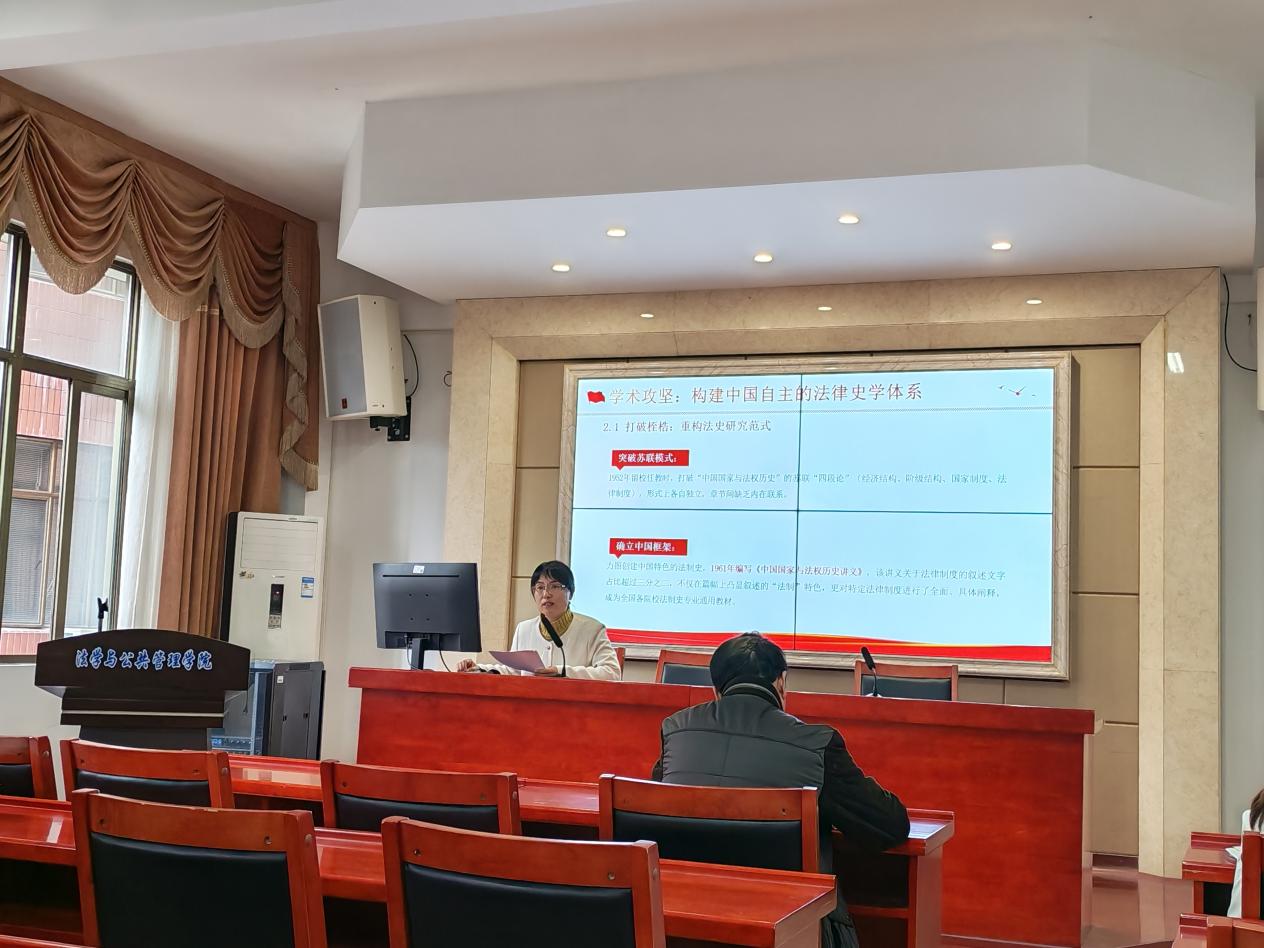 全体教职工在立言楼A425开展了以“深耕法史守初心 立德育人担使命——学习人民教育家张晋藩先生精神”为主题的“微党课”。本次党课由洪婕同志主讲,通过学习张晋藩先生深耕法史、立德树人的崇高事迹,深刻感悟教育家精神的丰富内涵,凝聚起为教育事业和法治中国建设奋斗的力量。