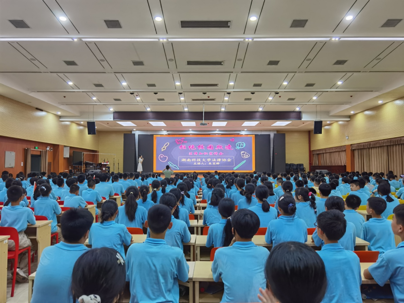 法律协会法治宣讲团再次应邀来到湘潭市示范性综合实践基地,进行了主题为“拒绝校园欺凌”的法律知识宣讲会,近540名学生参加了本次活动。