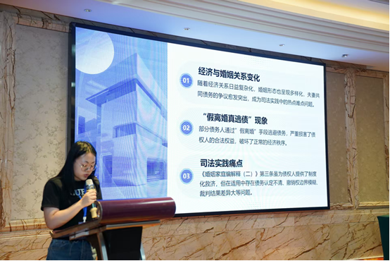 章小兵老师与赵倩倩同学结合研究与实践合作撰写的《债权人撤销权在夫妻共同债务认定中的适用边界—以婚姻家庭编解释(二)第三条为中心》一文荣获二等奖,并受邀作主题发言分享,与兄弟院校和司法实务界研究人员进行了深入的学术交流研讨。