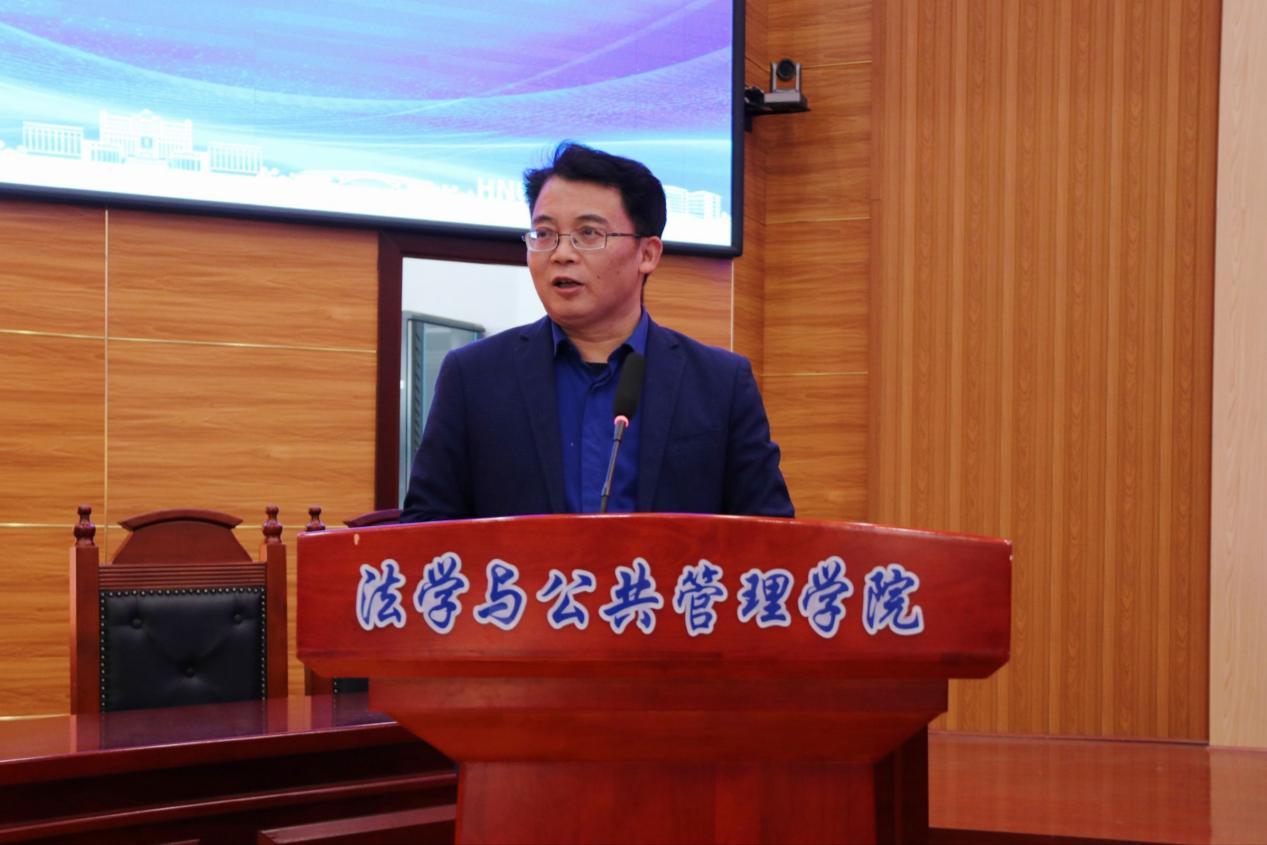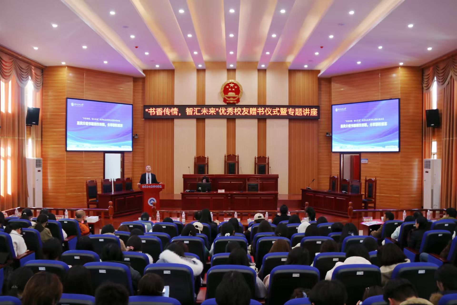 校友工作与国内合作办主任李友桥受邀致辞。他代表学校对陈科军校友回馈母校的善行表示诚挚感谢,指出校友是学校最珍贵的财富,也是学生成长道路上的楷模。他寄语法科学子,要珍视与行业精英面对面交流的时机,精进法学专业、磨炼实务本领,秉承“唯实惟新,至诚致志”的校训精神,在法治之路上坚定前行。