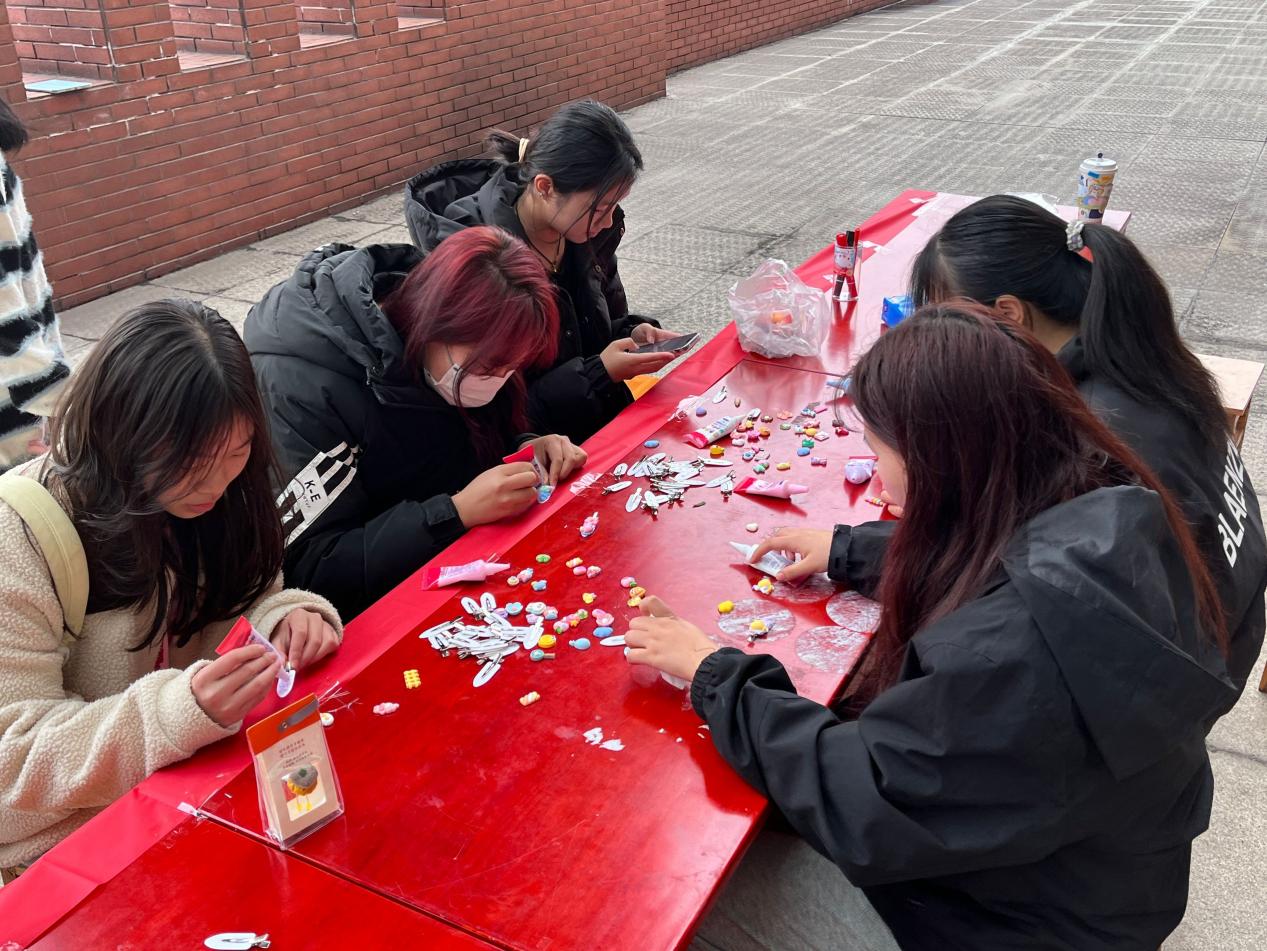 3月10日下午,奶油发卡DIY活动以及“幸运盲盒”抽奖活动如期举行。晴朗的天气激发了大家前来参与活动的热情,文体部成员积极为大家讲述活动流程并提供DIY工具,同学们在原本普通的发卡上设计出属于自己的独一无二的礼物。还有许多同学参与了盲盒抽奖活动,收获了精美的小礼品,除此之外,也为没有抽中的同学送出诚意满满的祝福明信片和丰富的小零食。文体部的礼物点缀了这个美好的周末,为大家留下了珍藏的回忆。
